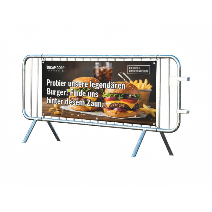 Description Crowd Control Barrier with Advertising Banner | Hot-dip Galvanized | L: 2470mm, H: 1090mm