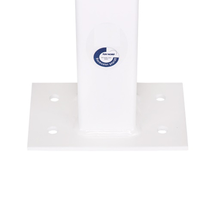 The bolt-on steel barrier post, 70x70 mm, is the ideal solution for anyone looking for robust and durable barriers. This barrier post has no eyelets, no lock, and has a galvanized and white powder-coated surface that protects it from corrosion. With a height of 100 cm and two red reflective films, it offers excellent visibility, even in poor lighting conditions.