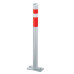 Example: Foldable barrier post, hot-dip galvanized, diameter 64 mm, with profile cylinder lock, red and white reflective upper part, with base plate for doweling.