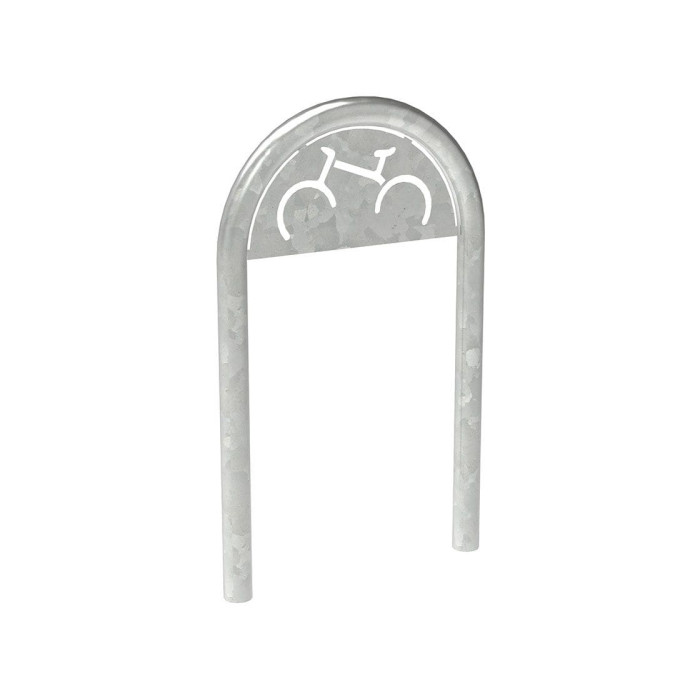 Description Bike stand in paper clip shape D 60 mm with signage, 1 bike, PROCITY: Metal - hot-dip galvanized, for embedding in concrete.