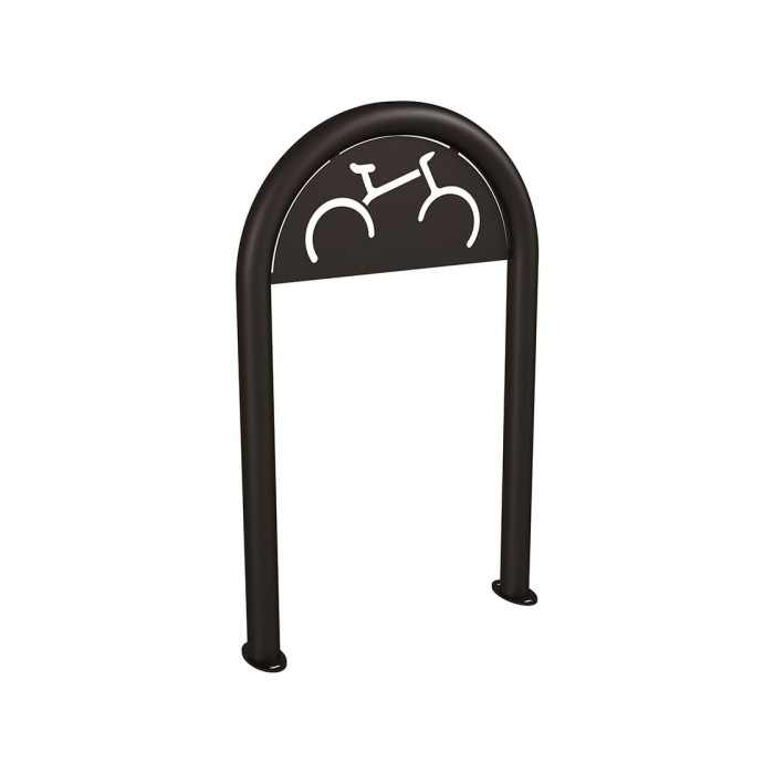 Main attributes Bike Rack in Paper Clip Shape D 60 mm with Signage, 1 Bike, PROCITY: Metal - Deep Black, on Floor Plates.