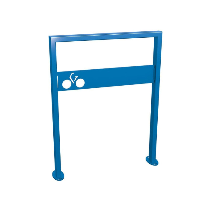 Description Bicycle stand Milano with signage, 1 bike, PROCITY: Metal - Gentian Blue, on base plates.