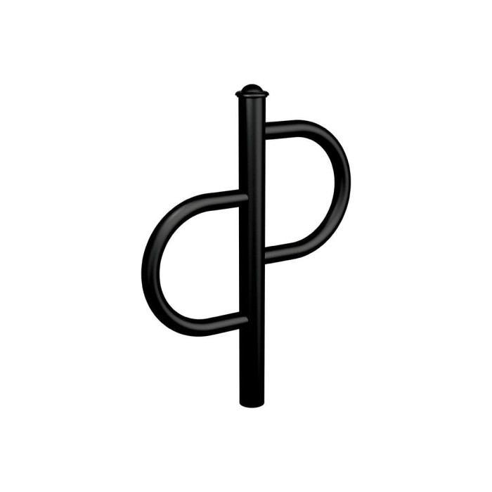 The S-shaped **Province Tradition Agora bicycle rack** is a modern bike lean-to that blends perfectly into any environment while providing secure parking for bicycles. As an official distribution partner of PROCITY, INCAPCORP presents this bicycle rack, designed to securely and efficiently park a single bike. With its attractive **Jet Black** (RAL 9005) color and a height of 930 mm above the ground (without the headpiece), this bike rack is both functional and aesthetically pleasing.