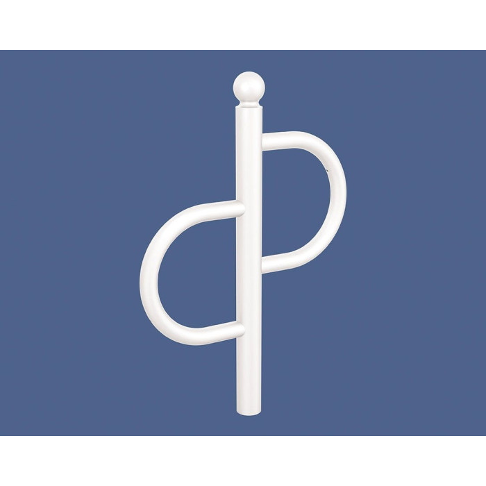 The S-shaped **Province Tradition Ball bicycle rack** seamlessly integrates into any environment, providing a secure parking solution for bicycles. Made from robust metal and wood with a clean **Pure White** finish, this product is perfectly suited for both public and private spaces.