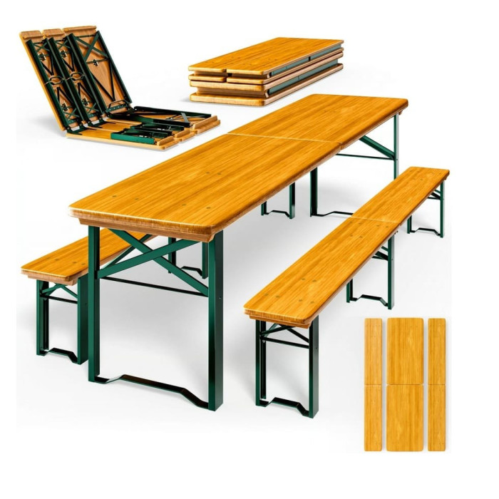 Thanks to the folding function in the middle of both the table and the benches, the set is easy to assemble and disassemble, making it convenient to transport. This means you are spontaneously prepared for a party or can take the Beer Tent Set along for camping or holidays. When not in use, you can store it in a space-saving manner. This folding beer garden set is the ideal solution if you have limited storage space, need it for travel, or want to be ready spontaneously!