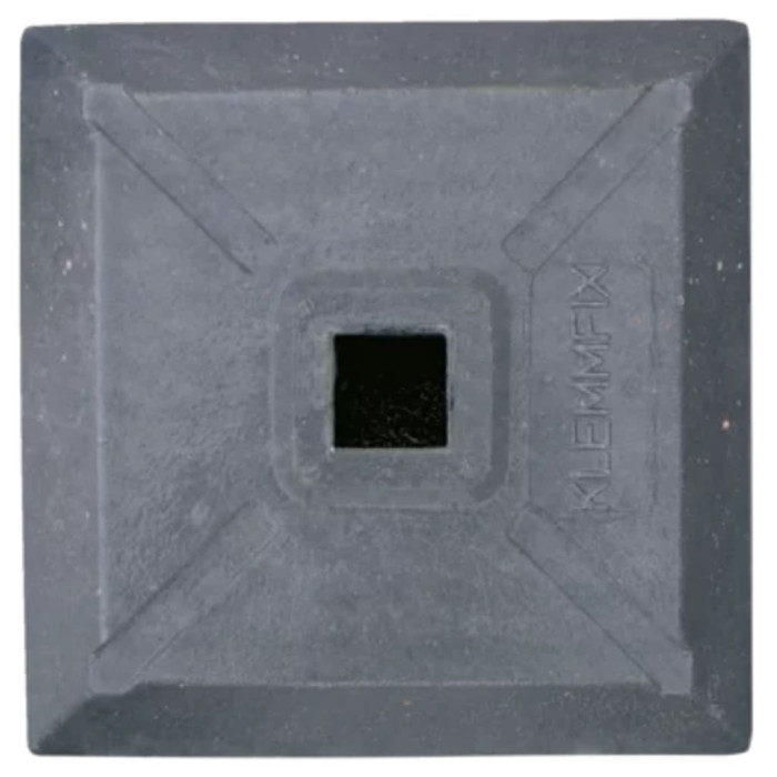 - Ref. Number: Kleine Fussplatte mit 12 kg Gewicht fuer z.B. Vario-Vierkantpfosten oder Kunststoff-Rundrohre mit Rohrschuh 60x60.