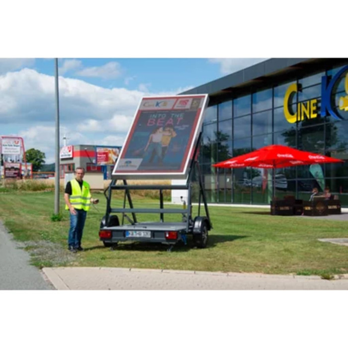 The horizont Event Table lift+rotate | Rotatable Advertising Board | Full-Matrix LED | Mobile | 12/230V is a cutting-edge solution designed to meet the dynamic needs of highway authorities, utility contractors, and emergency responders across Germany, the UK, and Ireland. In an era where effective communication is paramount, this mobile digital signage solution offers unparalleled versatility and visibility. Its ability to rotate and lift ensures that critical information can be displayed prominently in various environments, from busy urban centers to remote construction sites. The full-matrix LED technology allows for vibrant graphics and clear messaging, making it an essential tool for traffic management, event support, and public safety announcements. By integrating this advanced advertising board into their operations, organizations can enhance their communication strategies while ensuring compliance with local regulations.