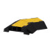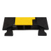 The modular cable protector with lid offers reliable protection on roads and pathways. Its yellow-black color scheme enables quick detection, while the interlocking elements allow easy connection on both sides. The high-resistance plastic lid ensures durability, while the beveled sides facilitate smooth passage and unhindered traffic flow. The 2-channel cable bridge is made from black recycled rubber with a stable yellow PE lid, suitable for heavy-duty truck traffic (approx. 1.25 inches). It features a carrying handle for easy handling and connector pins for simple combination of individual pieces. The composition of standard rubber makes it robust, non-slip, and universally applicable. Its molecular resistance to chemical erosion from petrol, oils, and road salts ensures longevity even in harsh environments.