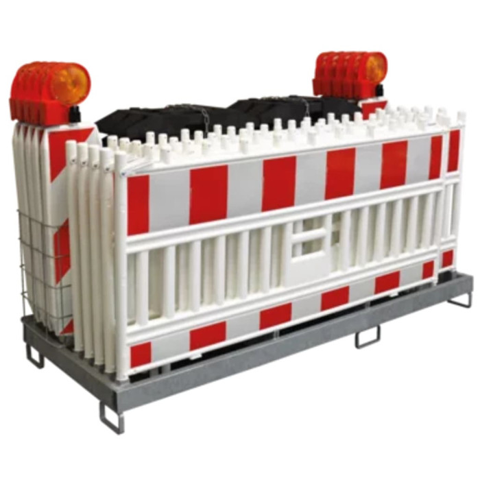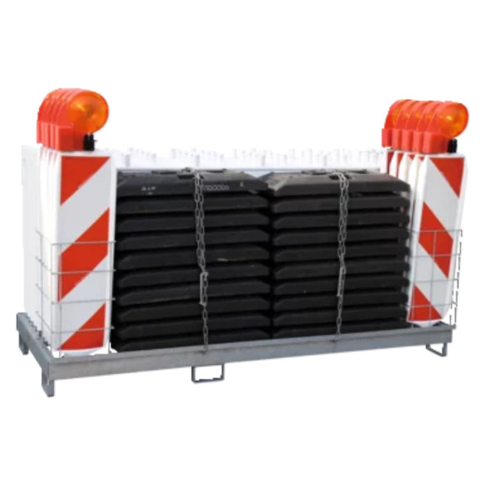 The combination storage and transport rack is engineered to meet the rigorous demands of construction and traffic management environments. Its robust design ensures that materials are stored securely, minimizing wear and tear during transit. The universal forklift accessibility allows for seamless handling, enhancing operational efficiency on-site. Constructed from high-quality galvanized steel, this rack offers exceptional structural integrity, ensuring it withstands the rigors of heavy-duty use. The incorporation of a tipping safety mechanism during forklift loading further enhances load safety compliance, reducing the risk of accidents. This system is compatible with various horizont Baken systems and footplates (excluding compact types), making it a versatile choice for diverse applications. Transporting and storing materials with mounted lighting is also feasible, providing added convenience in low-light conditions. The galvanized finish not only protects against corrosion but also extends the lifespan of the equipment, making it a wise investment for businesses focused on long-term durability. With its thoughtful design, this rack optimizes space utilization while ensuring that all components are easily accessible when needed.