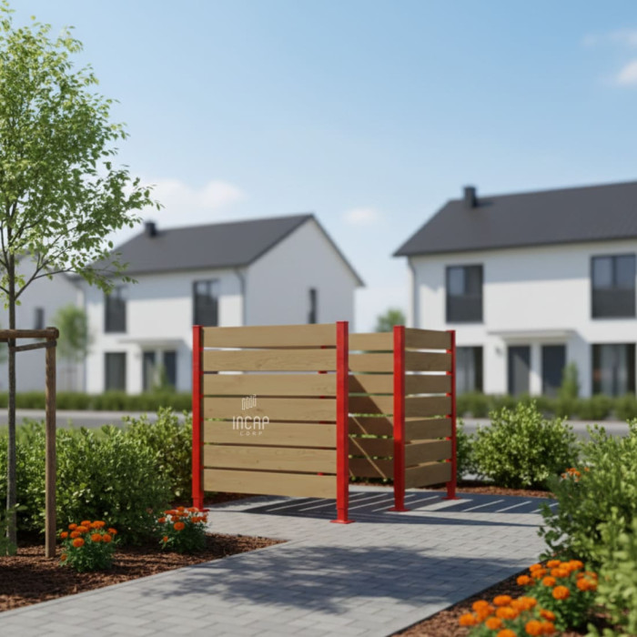 Main attributes Wheelie Bin Privacy Screen made of Compact Laminate – Complete Set (1500x1500 mm, Traffic Red).