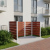 Garbage Can Privacy Screen. Enclosure Made of Compact Laminate. Posts on Base Plate Fixed - Galvanized and Coated. Type: High-Quality Garbage Can Privacy Screen. Material: Extremely durable compact laminate (HPL) in an elegant mahogany finish. Package Includes: This complete set is delivered as a kit and includes all necessary enclosure elements and matching posts. Assembly: Easy self-assembly. The privacy screen is ready for installation on base plates. – The modular compact laminate enclosure offers flexibility and allows for easy expansion for different numbers of cans, e.g., 3x120L or 2x240L.
