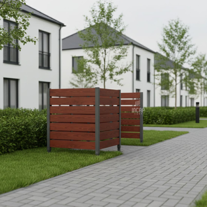 The garbage bin enclosure is actively used in Germany, Austria, Switzerland, Liechtenstein, the Netherlands, Denmark, Belgium, France, England, and other EU countries.