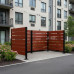 Garbage Bins Screen, Enclosure made of Compact Laminate, Posts on Base Plate Fixed - Galvanized and Coated. - This garbage bins screen made of compact laminate offers an elegant mahogany look and is highly durable. The complete set is delivered as a kit and includes all necessary enclosure elements and matching posts. The modular design allows for easy self-assembly and flexible expansion options for different numbers of bins.