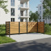 Wooden screen for trash cans, Extended range: 3x1100L or 10x240L. Stable with galvanized and powder-coated steel posts. Natural look with durable mahogany compact wood panels. Dimensions: 1500 x 3750 mm.
