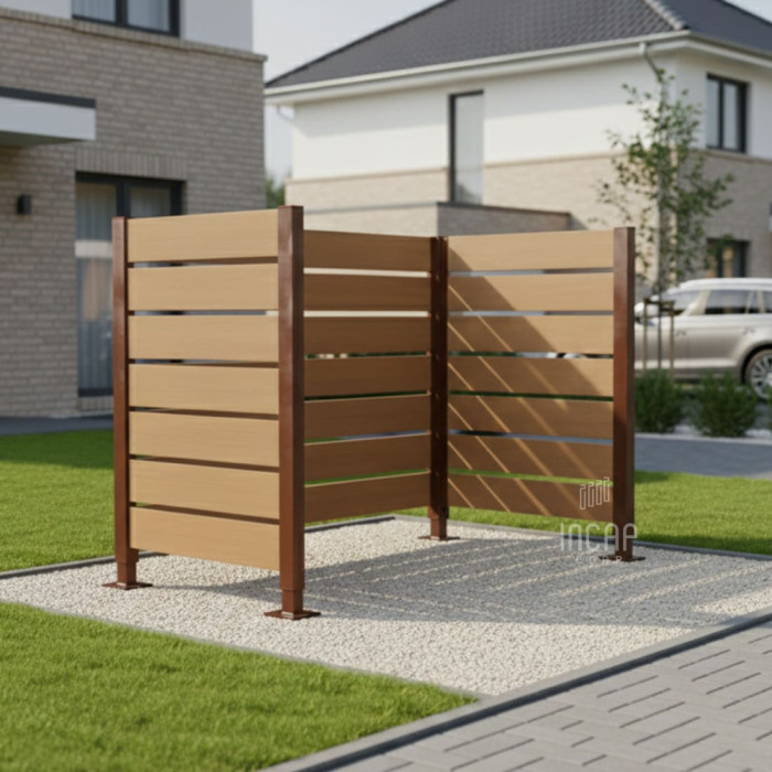 Description Garbage Bins Privacy Screen made of Compact Laminate - Complete Set (750x1500 mm, Chocolate Brown)