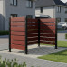 Wooden privacy screen for garbage cans, Compact: 3x120L or 2x240L. Stability with galvanized and powder-coated steel posts. Natural, warm look with durable mahogany compact wood panels. Dimensions (W x H, mm): 750 x 1500. Ideal for up to three 120-liter bins or two 240-liter bins in a row.