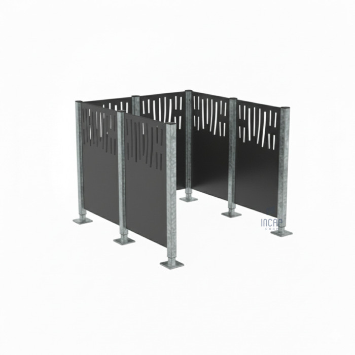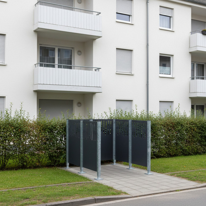 Description Garbage Bins Privacy Screen Venice Made of Steel – Complete Set (1500x1500 mm, Procity Gray)
