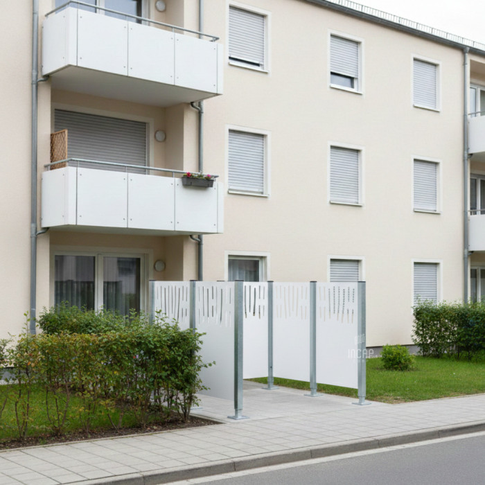 Description Garbage Bins Privacy Screen Venice in Steel – Complete Set (1500x1500 mm, Pure White)
