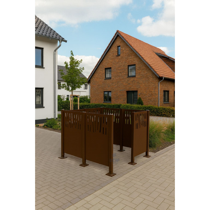 Description Waste Bin Privacy Screen Venice Steel - Complete Set (1500x1500 mm, Chocolate Brown)