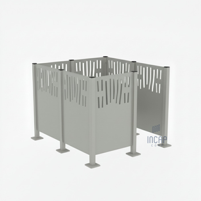 Description Garbage Bin Screen Venice in Steel – Complete Set (1500x1500 mm, Silk Grey)