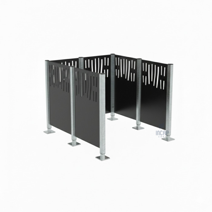 Description Garbage Bins Screen Venedig in Steel - Complete Set (1500x1500 mm, Deep Black)