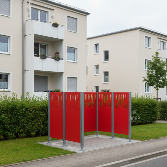 Waste Bin Privacy Screen Venice Steel – Complete Set (1500x2225 mm, Traffic Red) for Aesthetic Enhancement and Protection in Outdoor Areas