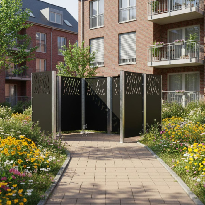 Main attributes Garbage Bins Privacy Screen Venice from Steel – Complete Set (1500x2960 mm, Deep Black)