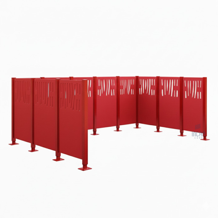 The steel garbage bin privacy screen offers an aesthetic solution for concealing garbage bins in outdoor areas. The Venice complete set, with dimensions of 2220x3700 mm and a traffic red color, ensures a harmonious integration into the surroundings and protects the garbage bins from weather conditions and unauthorized access.