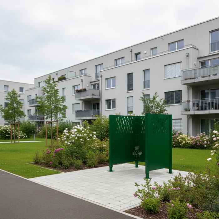 The steel waste bin privacy screen not only provides aesthetic enhancement but also effectively protects in outdoor areas. The complete set with dimensions of 750x750 mm in the color Moss Green is the ideal solution for concealing waste bins and creates a harmonious integration into outdoor spaces.