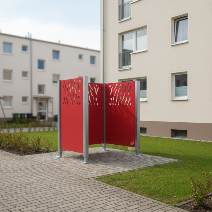 Breathtaking Appearance: "Venice" is hot-dip galvanized and painted in RAL colors to ensure a harmonious integration into the outdoor environment - The breathtaking appearance of the trash can privacy screen ensures not only an aesthetic upgrade but also a sustainable integration into the outdoor environment. The hot-dip galvanized and painted surface ensures a harmonious overall solution.