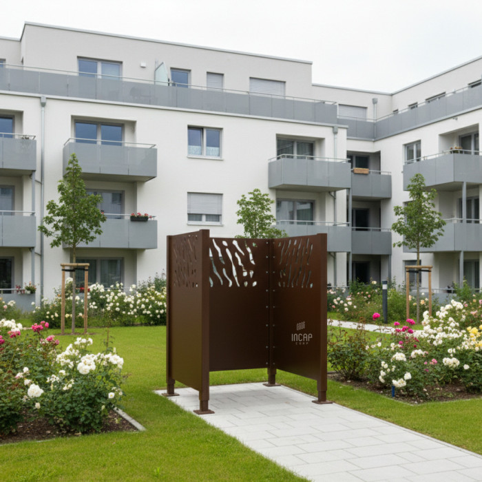 Description Garbage Bins Privacy Screen Venice Made of Steel – Complete Set (750x750 mm, Chocolate Brown)