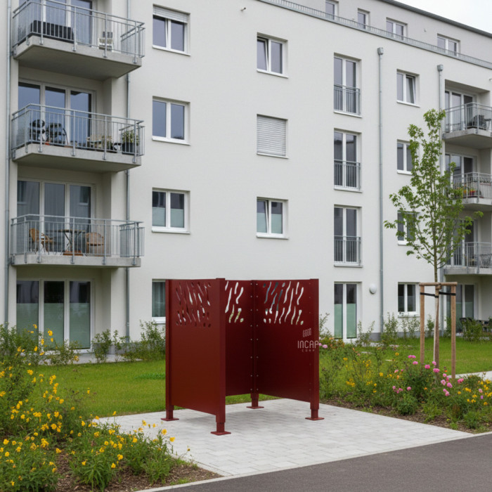 The steel wheelie bin screen provides an aesthetic solution for concealing outdoor waste bins. The complete set in traffic red with dimensions of 750x750 mm not only ensures a harmonious integration into the outdoor space but also guarantees protection against unauthorized access and weather influences.