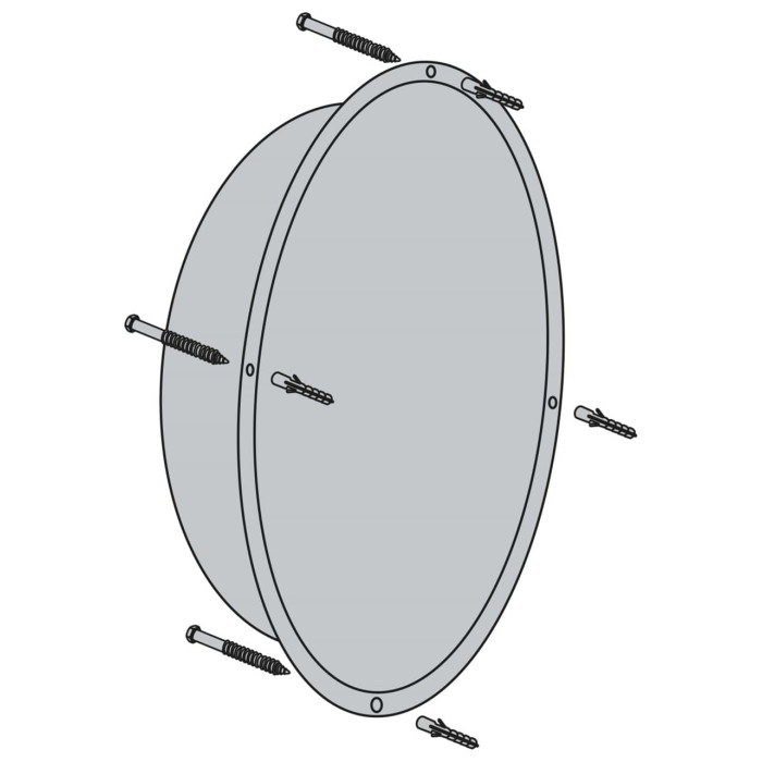 The Panorama Mirror 570 mm VIALUX 1/2 Sphere, POLYMIR is a premium product specifically developed for demanding environments. With its 570 mm diameter, it offers a wide field of vision. The Polymir® mirror surface ensures an excellent, distortion-free image. The mirror edge is pre-drilled, allowing for easy ceiling installation. A suitable bracket with anchors and screws for wall mounting is included in the scope of delivery.
