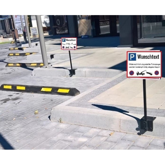 Main attributes Parking space reservation for visitors only, attached to the curb, made of stainless steel, post length 1000 mm with base plate for dowelling