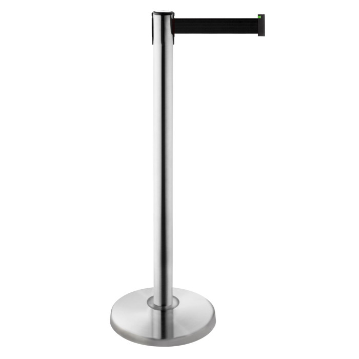 Our webbing barrier stand features a 3m webbing extension in a sleek black finish that is both sturdy and eye-catching. The belt barrier post is designed to create a clear and visible barrier to effectively direct the flow of people and demarcate areas.