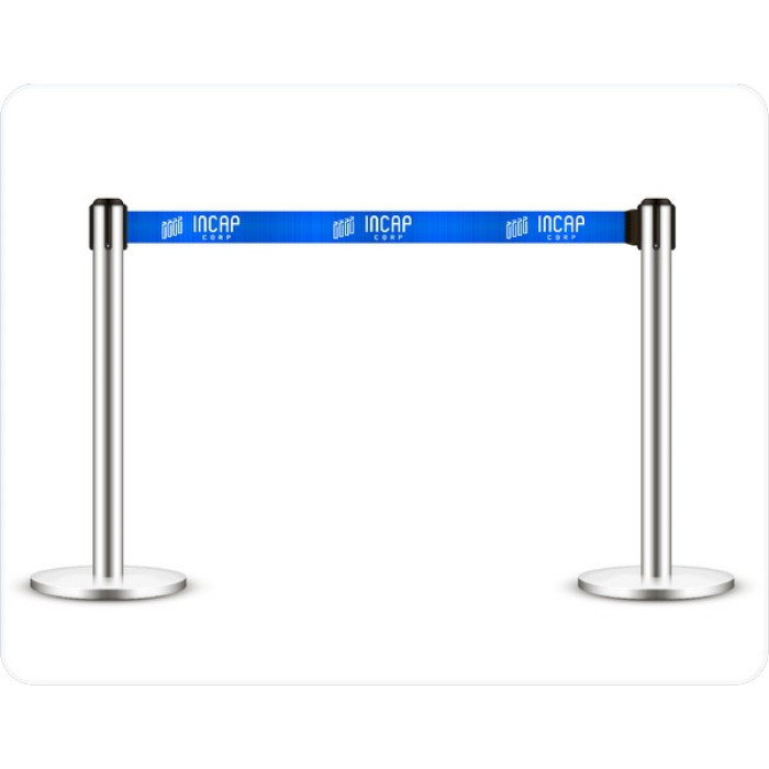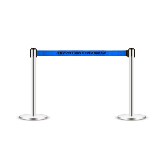 Benefit from our unique print file creation service for drawstring printing and stand out with a personalized print on your stainless steel belt post with 360 degree rotating head or people guidance system barrier post. Our offer not only includes high-quality products, but also the option of adding your individual text or logo to them.