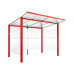 The frames are made of ESG glass in traffic red. The roof material consists of PC multiwall sheet (10 mm UV), and the side and back wall materials are also made of ESG glass.