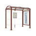 A high-quality bus waiting shelter with a simple design that harmoniously fits into rural and urban environments. Available in two lengths: 2500 mm or 5000 mm, with a total depth of 1600 mm. The shelter features square posts made of steel tube (80 x 80 mm) on base plates, providing a height under the roof of 2500 mm. The roof is made of arched polycarbonate panels (6 mm with UV protection) supported by aluminum tube struts (40 x 60 mm) and aluminum profile gutters. The shelter's sides and back are covered with Securit glass (8 mm) held in place by a brushed aluminum clamping system. It also includes a display case for bus schedules and advertising space, available in two options: a lightbox (1710 x 1160 mm) or the "2000" display case (1750 x 1200 mm). The shelter is fire galvanized and coated in a choice of RAL colors for durability. It is mounted on base plates.