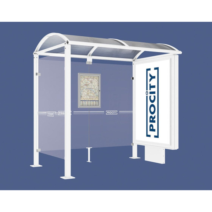 Eine hochwertige Buswartehalle mit schlichtem Design, die sich harmonisch in ländliche und städtische Umgebungen einfügt. Erhältlich in zwei Längen: 2500 oder 5000 mm. Die Gesamttiefe beträgt 1600 mm. Die eckigen Pfosten bestehen aus Stahlrohr 80 x 80 mm auf Bodenplatten. Die Höhe unter dem Dach beträgt 2500 mm. Das Dach besteht aus gewölbten Polycarbonatplatten mit einem UV-Schutz von 6 mm. Die Dachstruktur besteht aus Aluminiumrohr-Streben, 40 x 60 mm und Rinnen aus Aluminiumprofil. Die Seiten- und Rückseitenverkleidung besteht aus Securit-Glas, 8 mm. Die Verkleidung wird durch ein Klemmsystem aus gebürstetem Aluguss befestigt. Die Buswartehalle verfügt über einen Fahrplanschaukasten (Art. Nr. 505045) und eine Anzeigefläche für Information und Werbung in Form eines Leuchtkastens oder Schaukastens „2000“. Die Buswartehalle ist feuerverzinkt und beschichtet in verschiedenen RAL-Farben zur Wahl. Montage erfolgt auf Bodenplatten.
