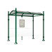 Available in two lengths: 2500 or 5000 mm, with an overall depth of 1600 mm. The round posts are made of 3mm thick aluminum pipe with a diameter of 76mm, mounted on base plates. The cover feet and mounting brackets are made of die-cast aluminum. The height under the roof is 2500 mm. The roof is made of arched polycarbonate panels, 6mm thick with UV protection. The roof structure consists of two aluminum tube struts, 40 x 60mm, and two gutters made of aluminum profile. The brackets are made of curved aluminum profile. The side and rear panels are made of Securit glass, 8mm thick, and are fastened using a clamping system made of die-cast aluminum. The display case for schedules measures 750 x 550mm (4 A4), with a depth of 30mm, made of anodized aluminum (Art. No. 505045). For information and advertising purposes, it can be equipped with a lightbox (display area size: 1710 x 1160mm) or "2000" display case (display area size: 1710 x 1200mm). Available in various RAL colors for coating and can be mounted on base plates.