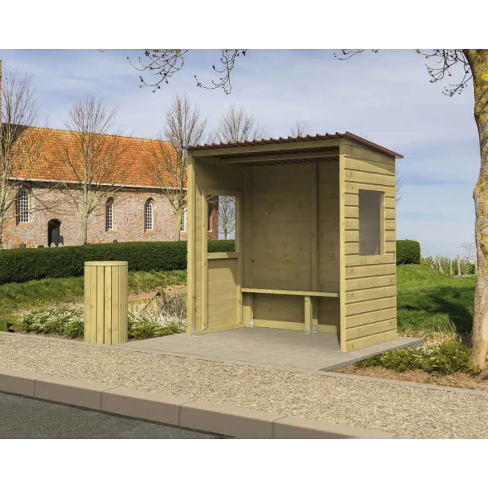 Description Procity Waiting Shelter Turin made of Wood with Window, L 2000 mm