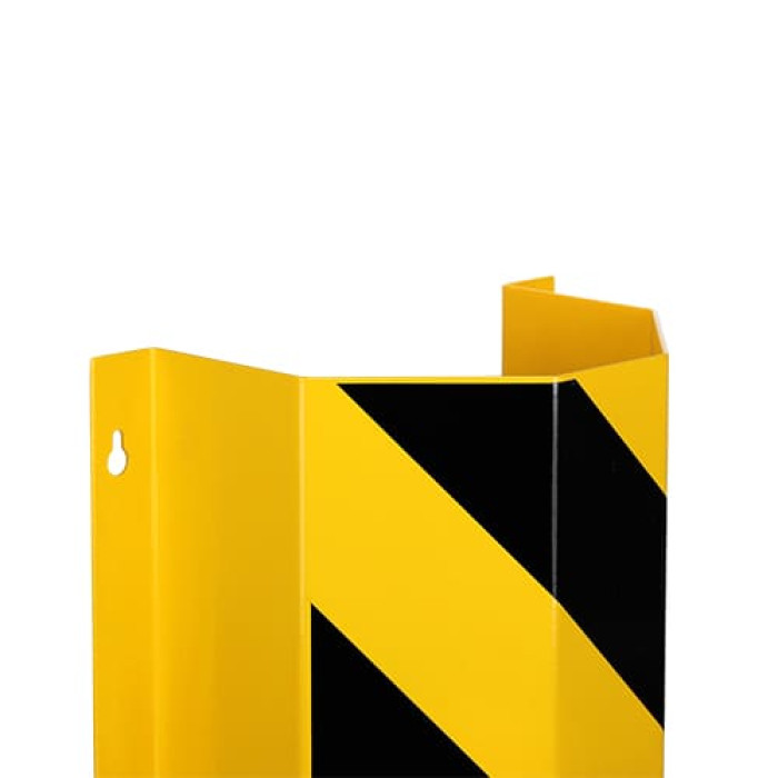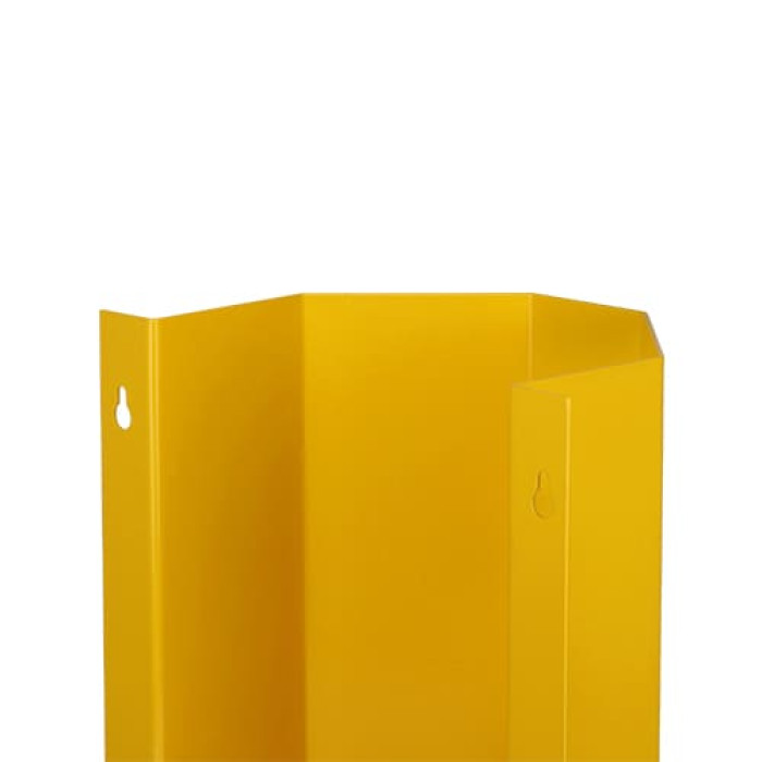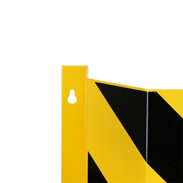 This robust crash guard is designed to protect vertically running indoor drainage pipes from mechanical damage. The striking yellow powder coating with black warning markings increases visibility and thus actively contributes to accident prevention. Installation by bolting to the wall ensures a firm and secure hold.