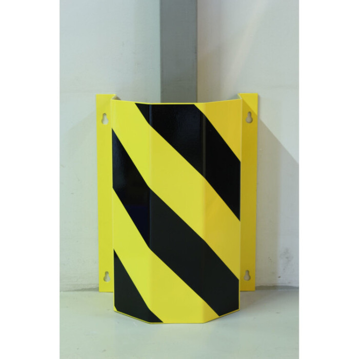 • Drainage pipe protection, height 500 mm, width 395 mm, galvanized and powder-coated yellow (similar to RAL 1023), with black warning marking, for bolting, indoor use, TÜV-certified.
