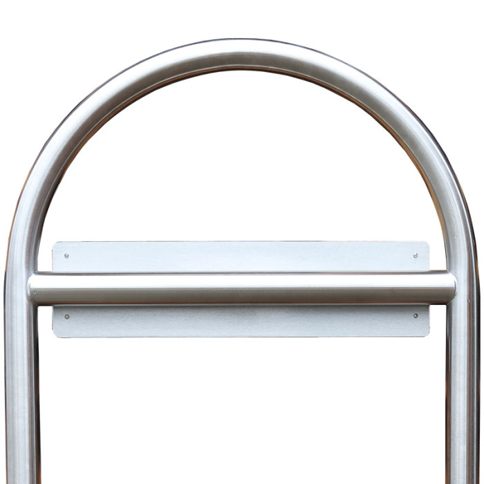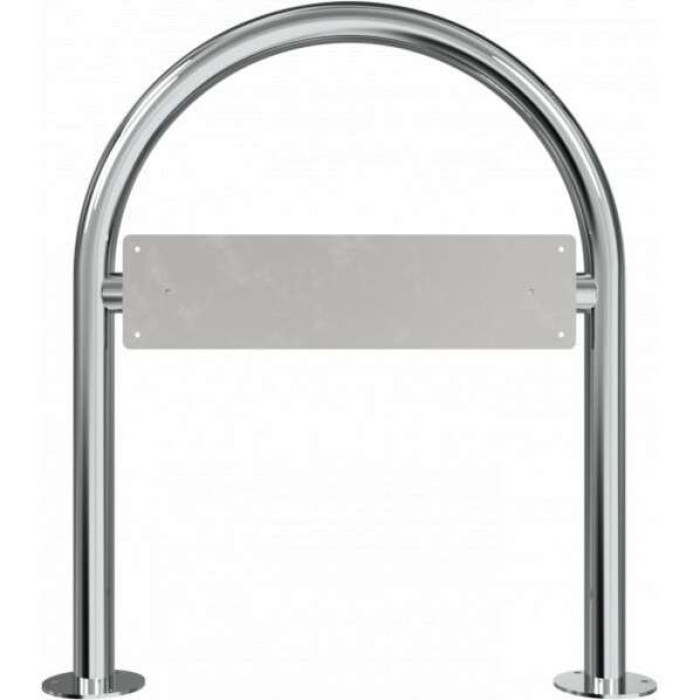 Main attributes Round hoops for parking lot signage Ø 38 mm, height approx. 900 mm, width approx. 600 mm, made of stainless steel with base plate for dowelling