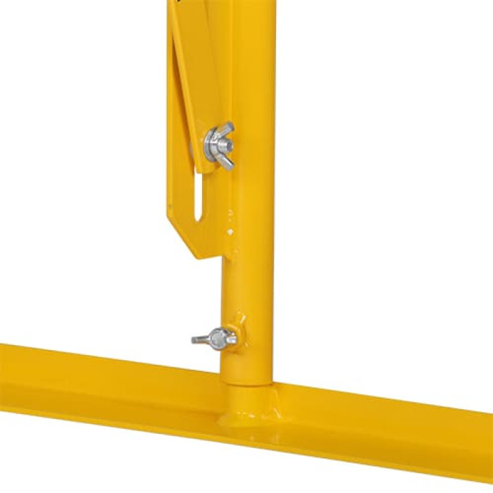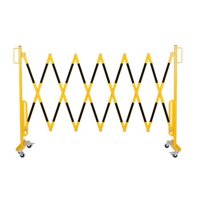 The scissor gate is made of robust steel and is equipped with rollers on both sides to ensure flexible use. With a height of 1050 mm and a length of 3600 mm, it offers an effective barrier that is easy to transport and store. The yellow and black color combination ensures high visibility and safety, while the powder-coated surface guarantees a long service life.
