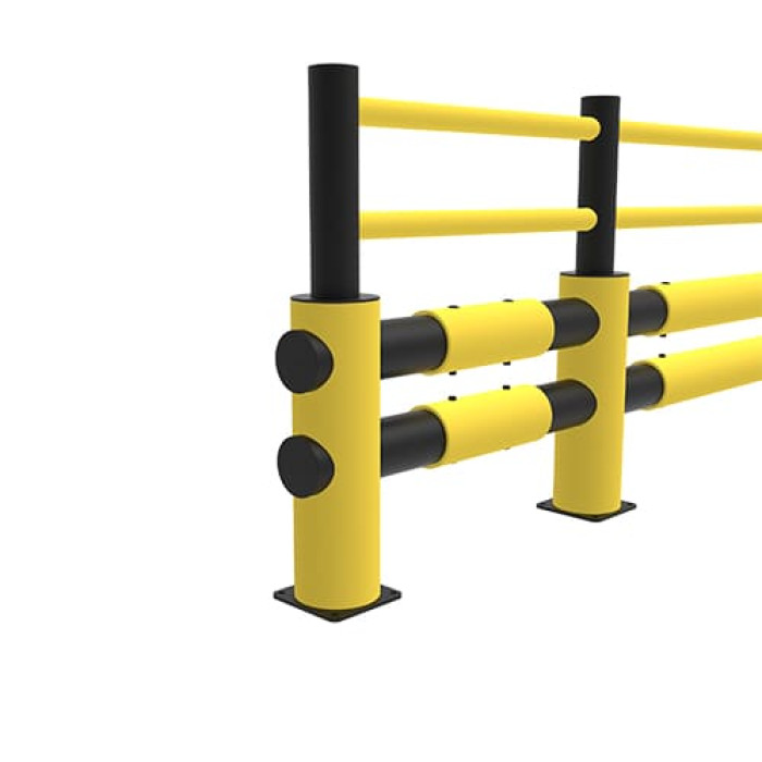 • Two-row construction: The double tubes offer increased resistance to impact forces, especially in the lower area, where the risk of forklift collisions is greatest.