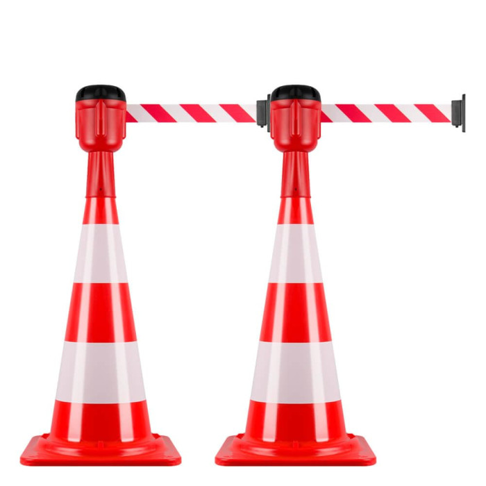 - High visibility: The red/white hatched barrier tape ensures maximum attention.