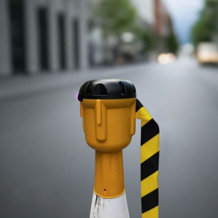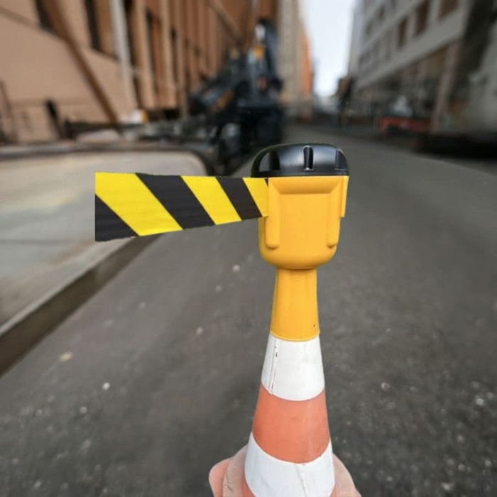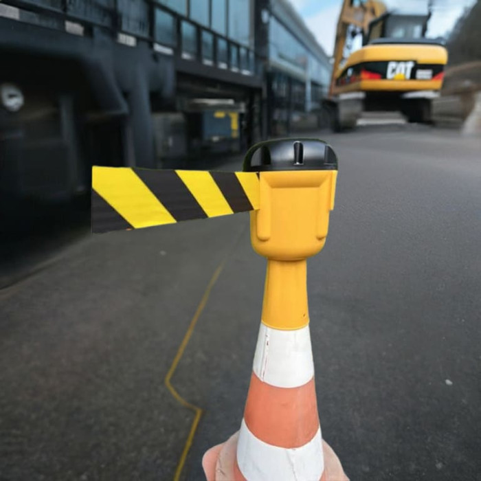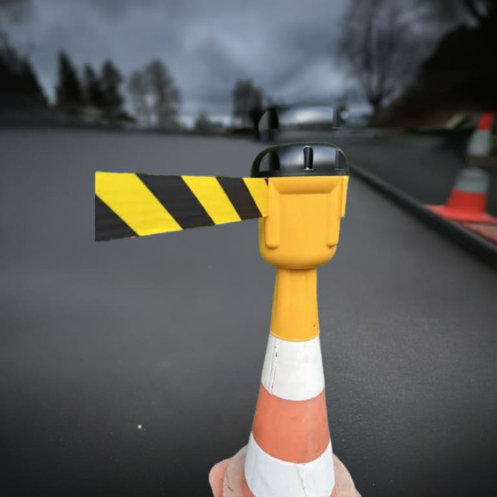 Retractable belt for road cones: safety and flexibility