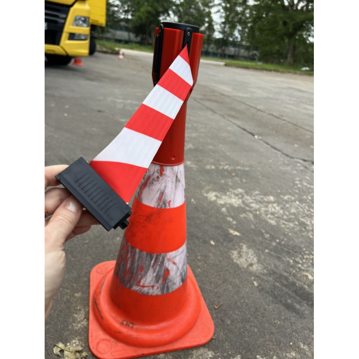 Innovative traffic cone attachment 3 m belt red/white cassette red