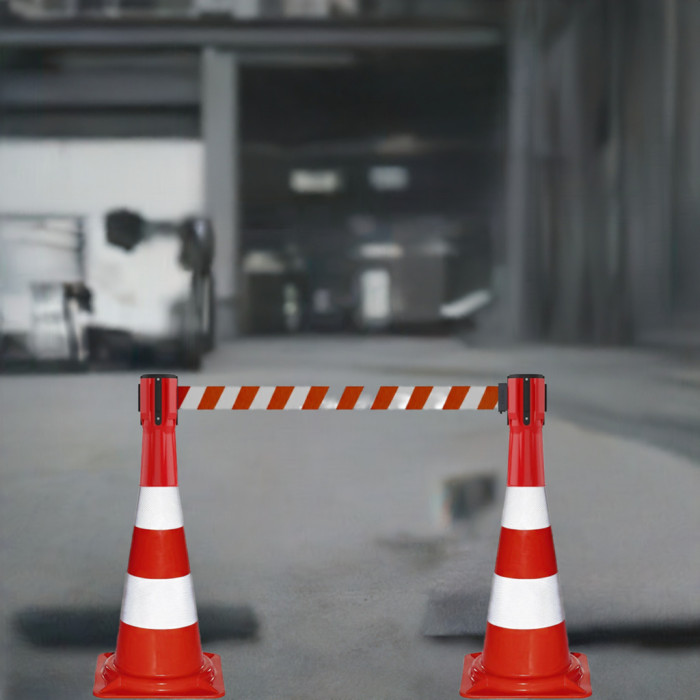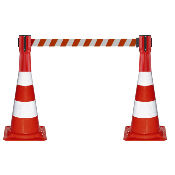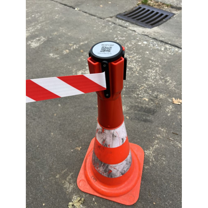 Our traffic cone attachments for a flexible barrier system include the hatched traffic cone attachment with red/white belt and red cassette as well as the traffic cone attachment with barrier tape for attaching to traffic cones. At Incapcorp you can buy barrier technology, barriers and people guidance systems cheaply, including the 3 m traffic cone attachment with red/white belt and red cassette and the traffic cone attachment with belt barrier tape. Buy barrier tape traffic cones and the traffic cone attachment with barrier tape online at INCAPCORP.de.